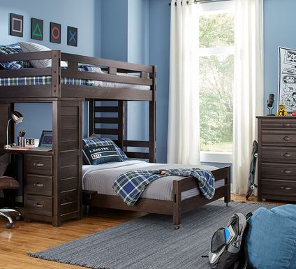 Loft beds with desks are the perfect solution for kids and teenagers rooms corner bunk beds. A tremendous amount of useful storage space is obtained by adding the drawers underneath the bed.