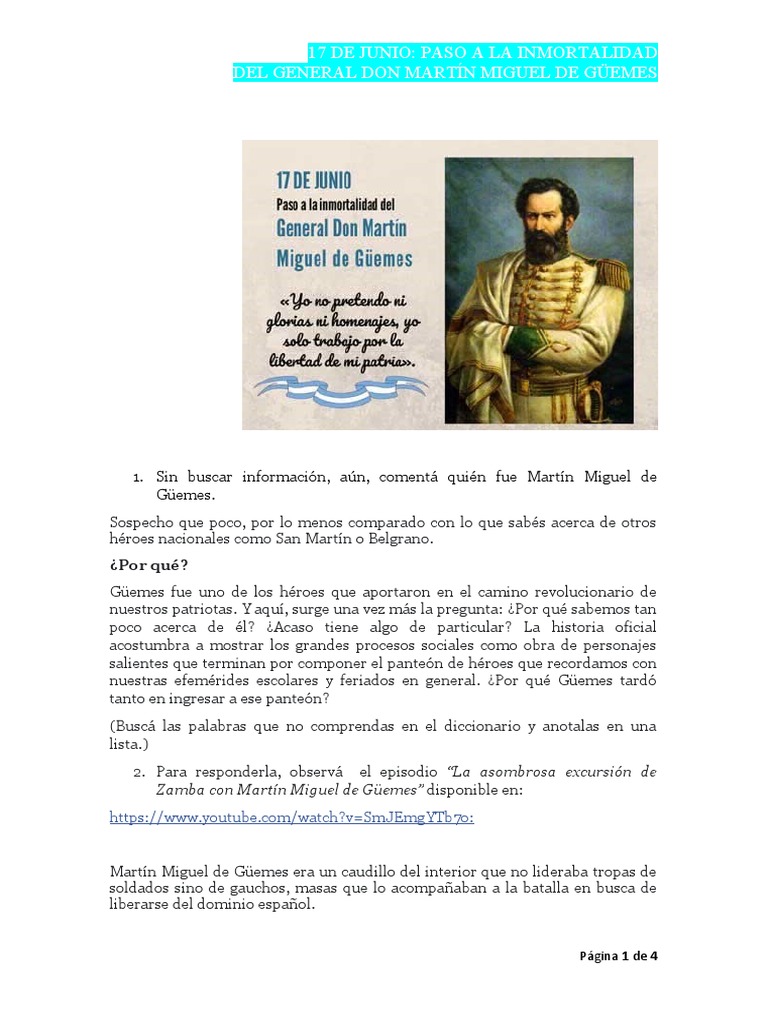 Las noticias de última hora, verídicas y sin censuras de martín miguel de güemes. From wikipedia, the free encyclopedia. Este 17 de junio recordamos con justicia al hombre que, al mando de sus dragones infernales (división infernal de gauchos de línea), fue la peor pesadilla para los poderosos ejércitos invasores realistas durante la guerra de independencia. El general martín miguel de güemes fue uno de los hombres más importantes en la defensa de la región de salta durante las guerras de independencia. Dieser tag ist ein gesetzlicher feiertag und grundsätzlich arbeitsfrei.